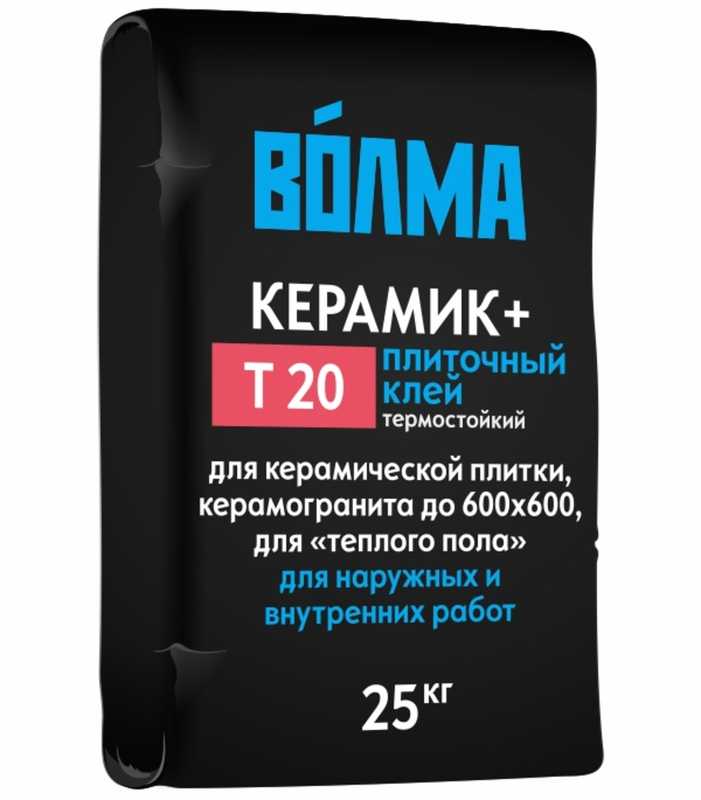 ВОЛМА-Керамик - сухая клеевая смесь на основе портландцемента, фракционированного песка и модифицирующих добавок. Морозостойкий. Для керамической и клинкерной плитки, для облицовки "тёплого пола". Для наружных и внутренних работ.